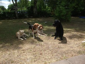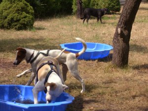 N01: ist es schön, die Sonne in der Hunde Kita zu genießen